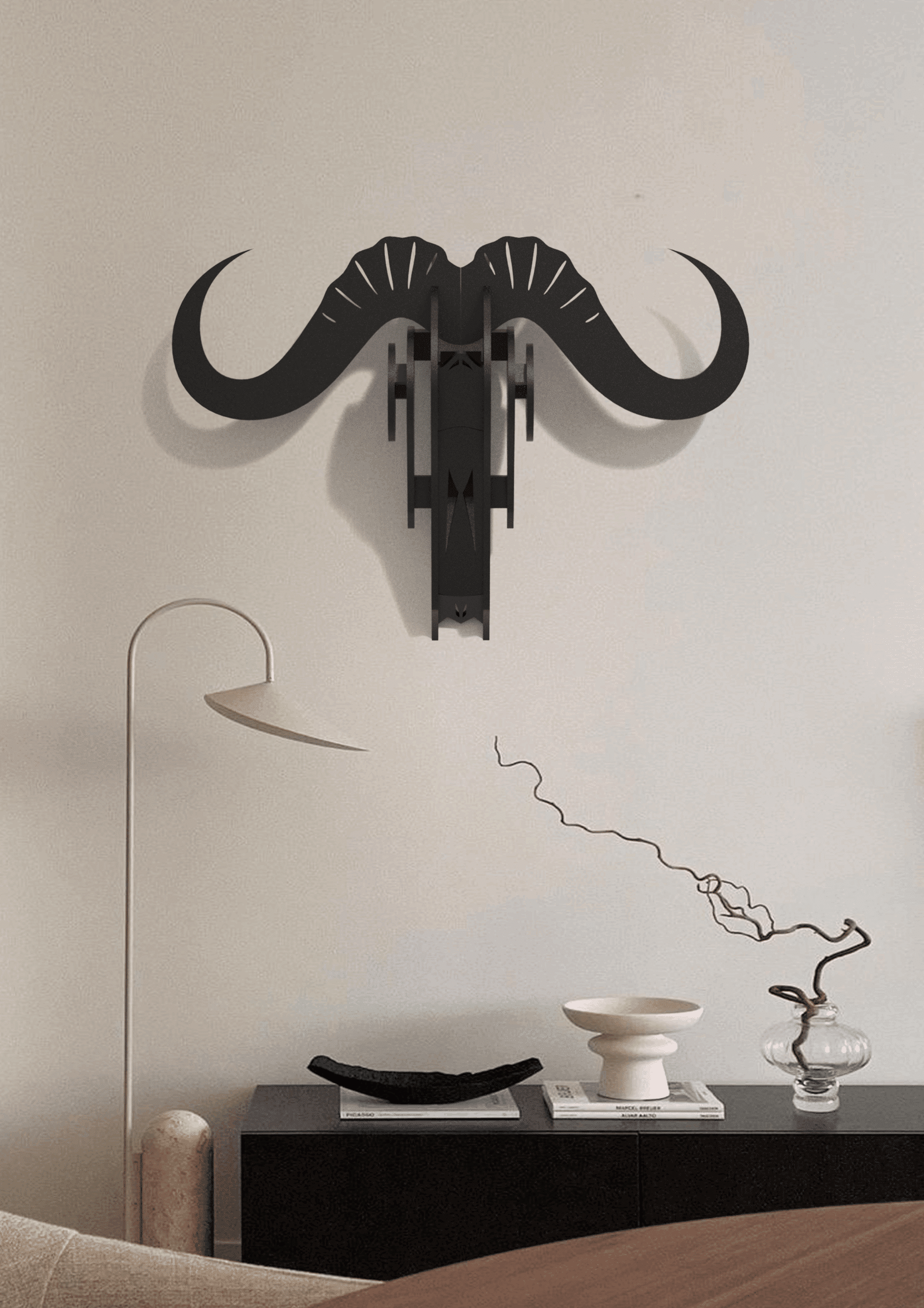 A system of powerful magnets facilitates the installation without visible screws on the surface, keeping the lightness and the refined style that the artist wanted to give to this creation, which will seem to float in front of your wall.